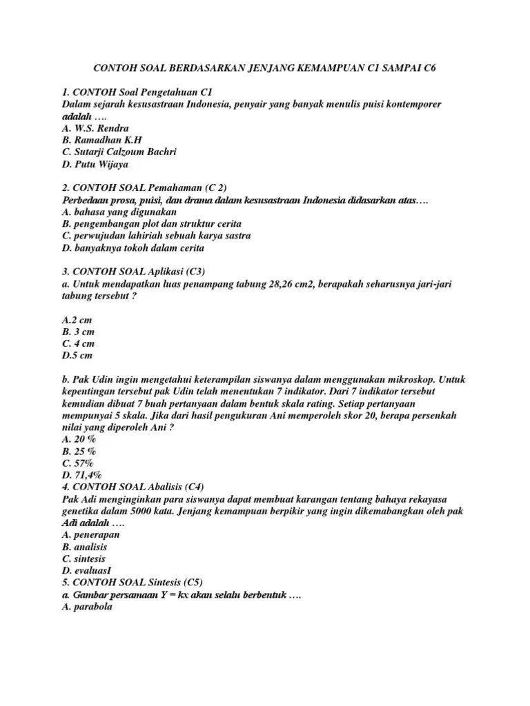 Contoh Soal C1 Sampai C6 Untuk Sd / Contoh Soal Uraian C1 Sampai C6 - Carles Pen